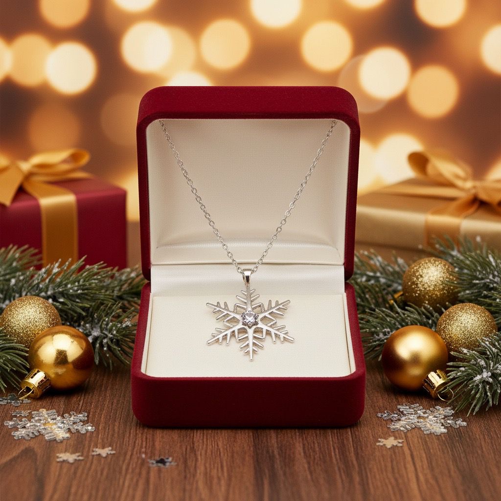 Beyaz Taşlı Kar Taneli Bayan Kolye