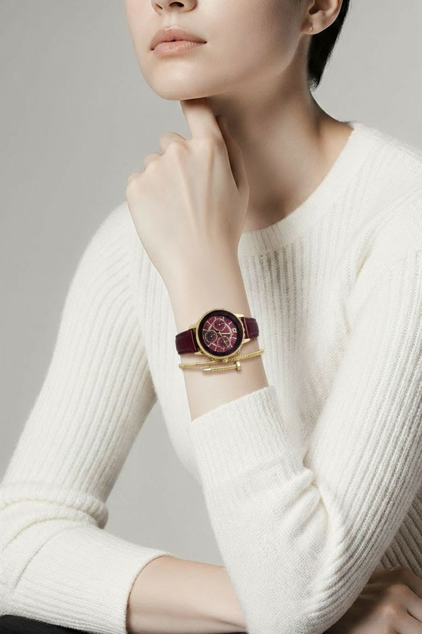 - Şık sarı kasa rengi ile bordo renk uyumu modern ve zamansız bir görünüm sunar.